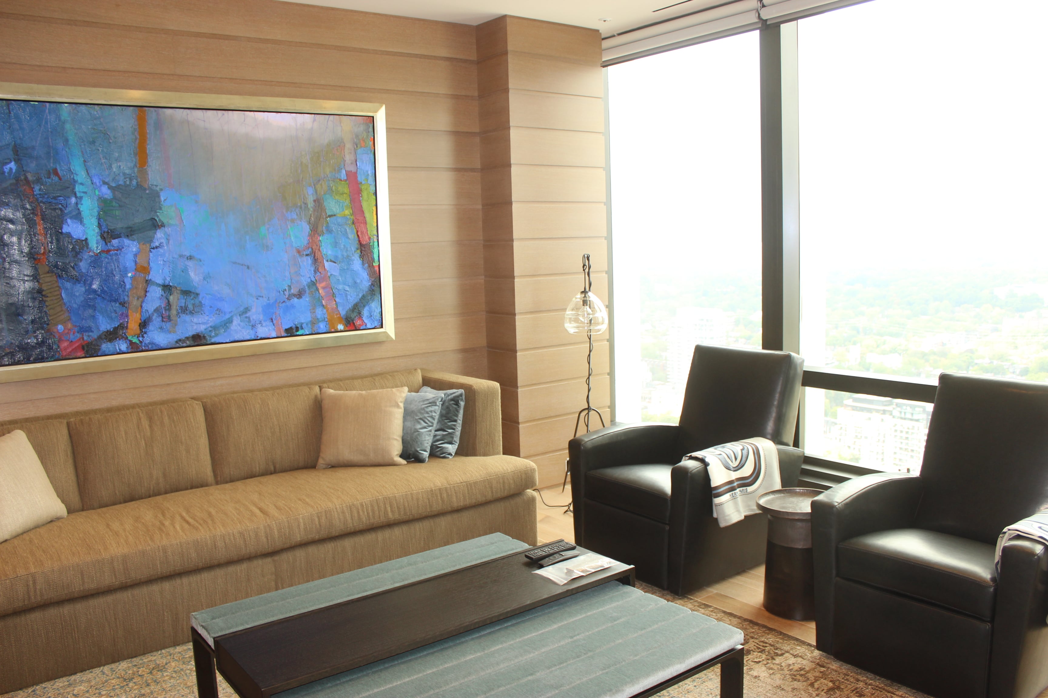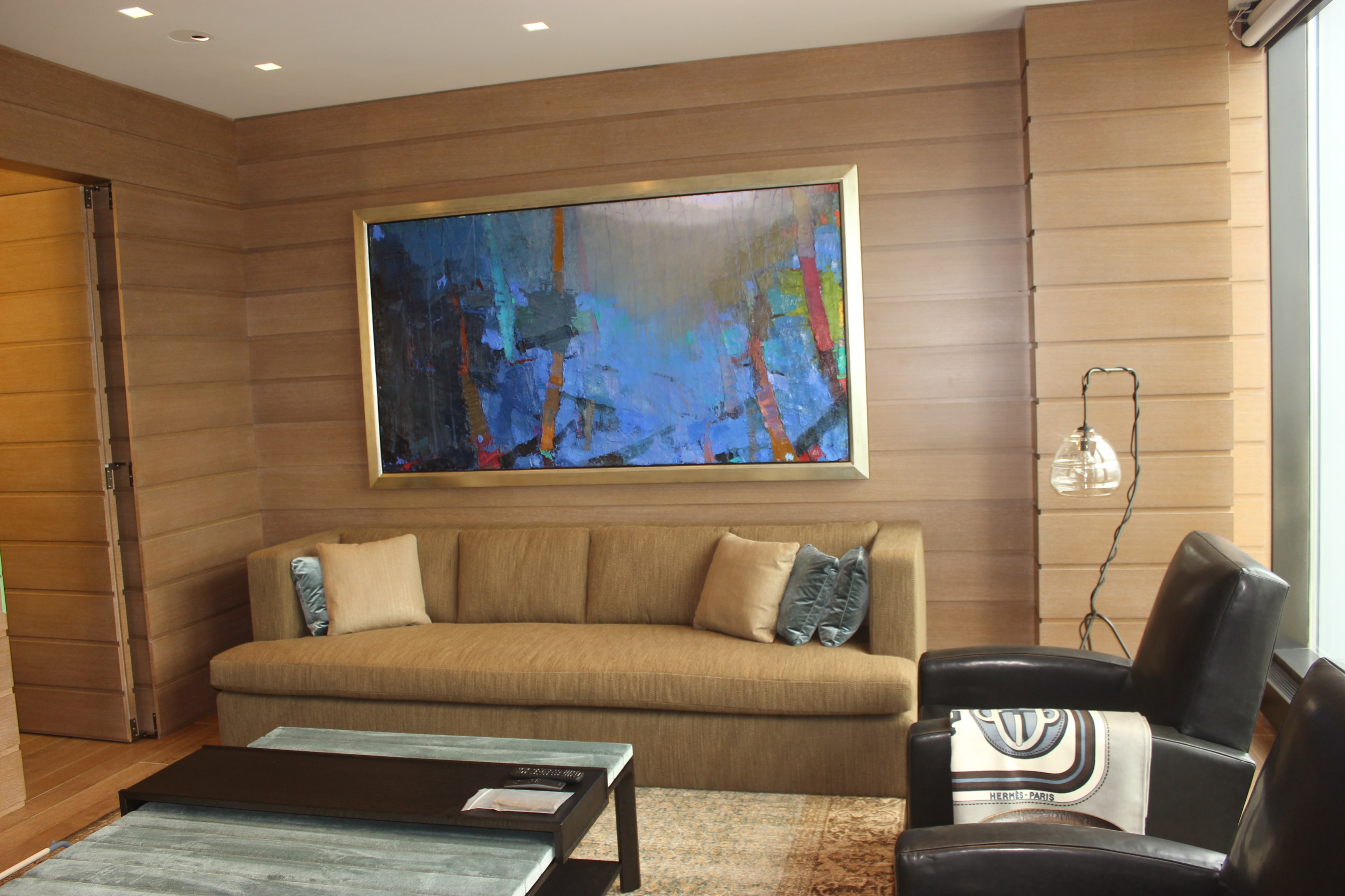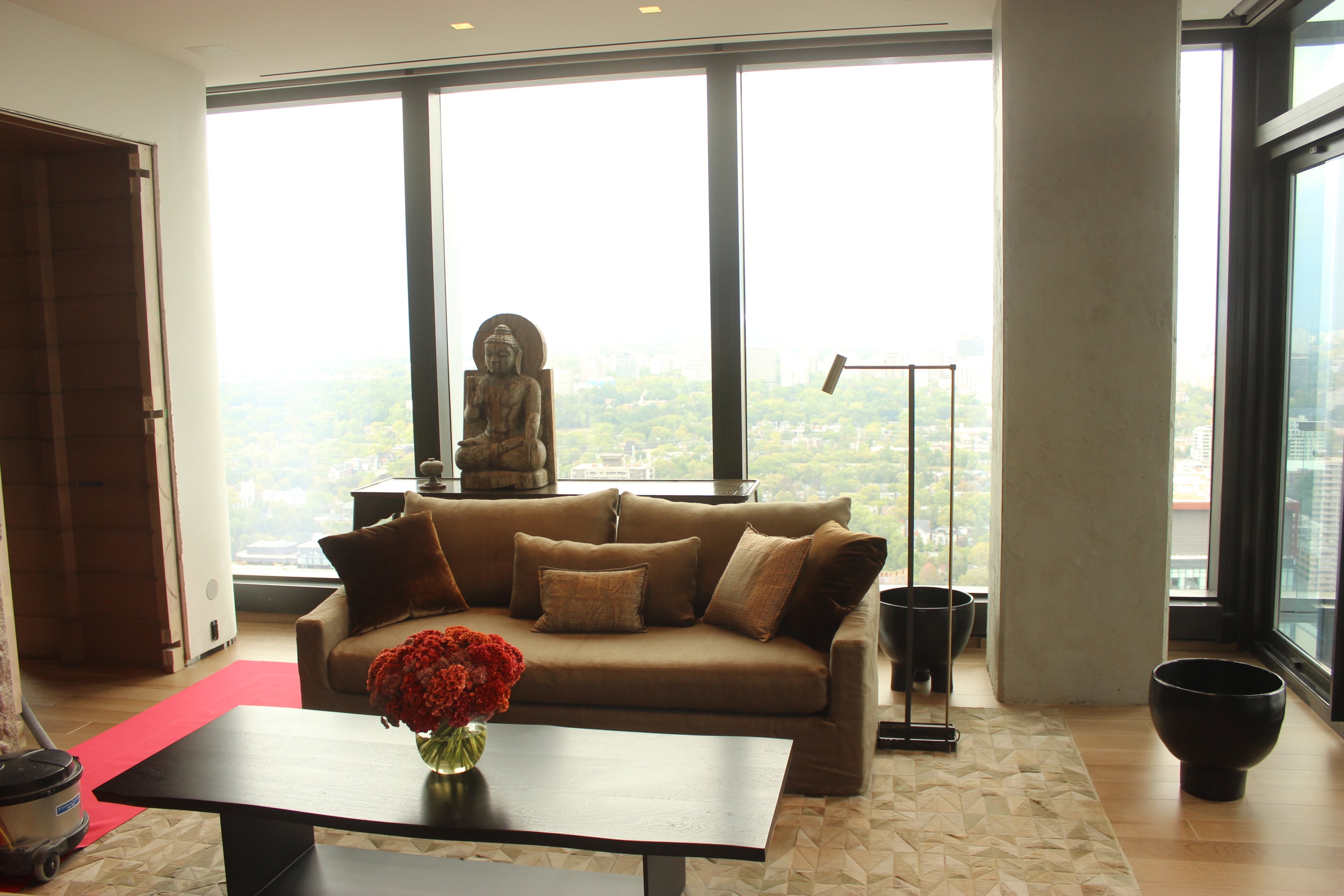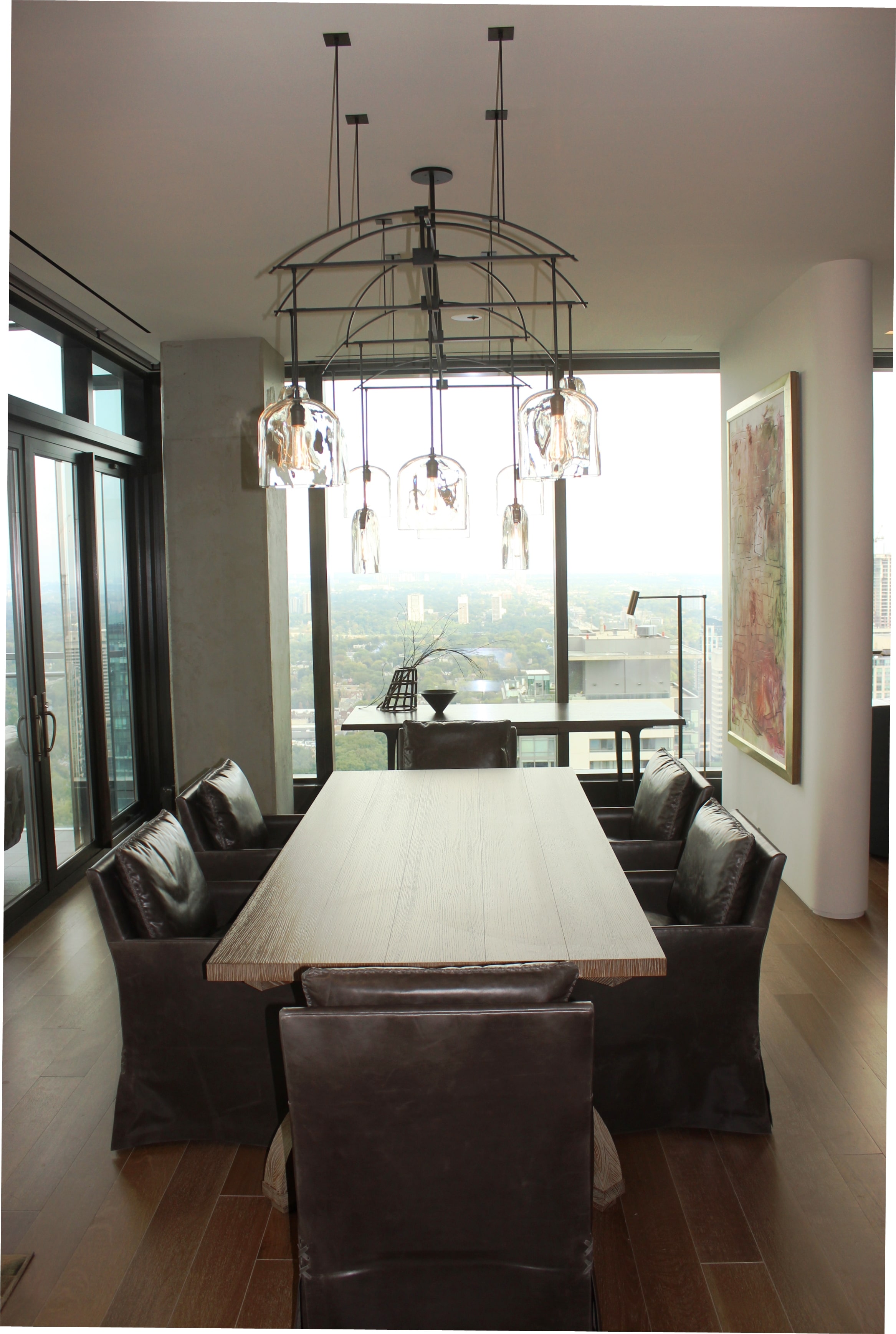 This project was a complete gut renovation of an existing condominium unit on the 36th floor of Toronto’s premier address location in the Four Seasons Hotel and Residences. This highly detailed suite design features some beautiful carved limestone slabs from Ontario, ornate wall and ceiling panelling with horizontal lines that wrap around the suite and soft rounded walls.